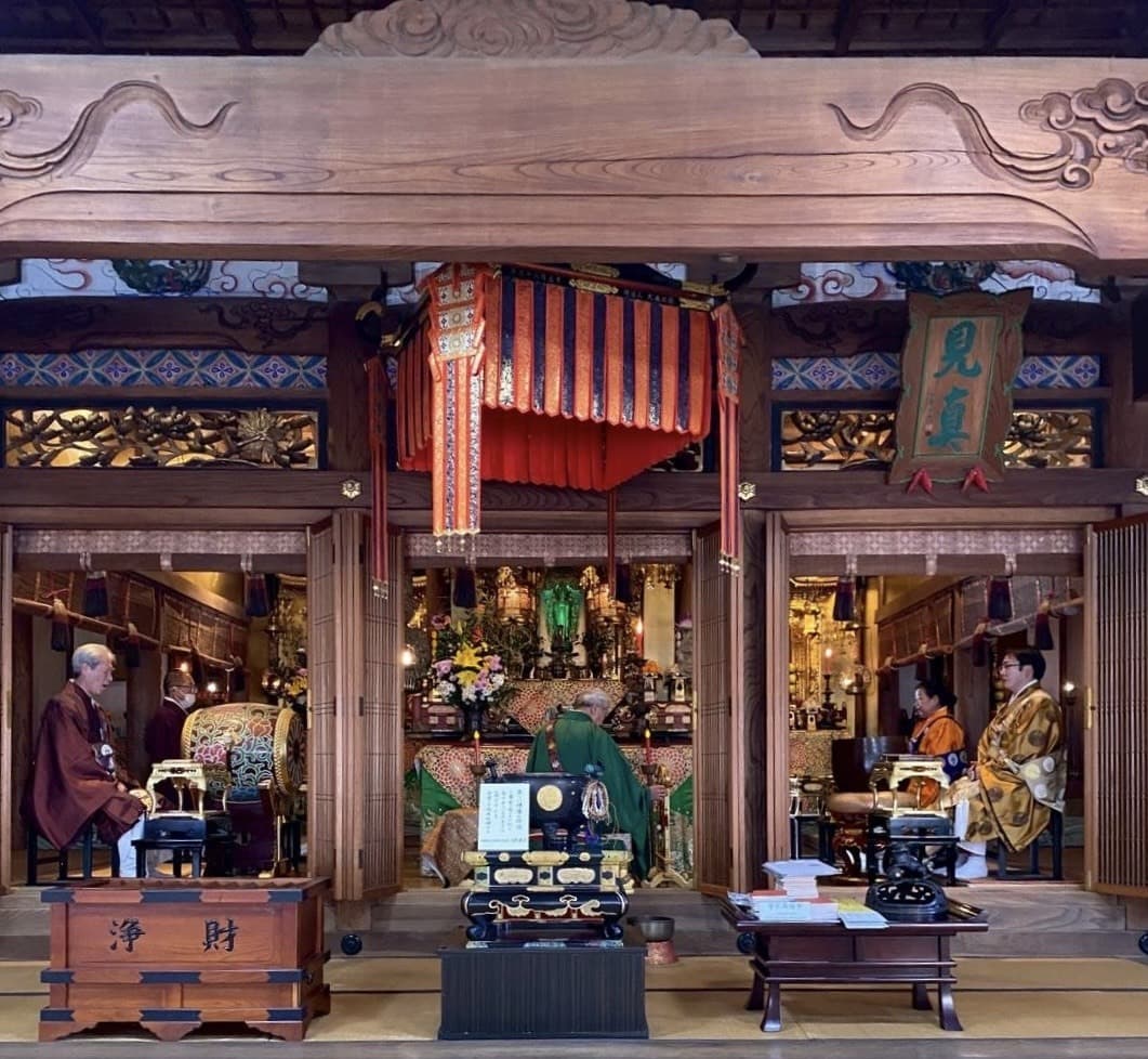 お寺に来られましたら、お勤めをしている間、背筋を伸ばし(瞑想座布団を使用してください)無心になり、目をつむり瞑想をしていただいて結構です。