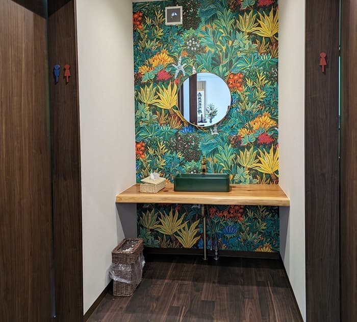 仏花で飾られた手洗い場
